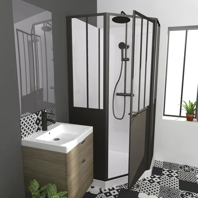 Cabine de douche 1/4 de cercle industrielle L.100 x l.100 cm, Artelo